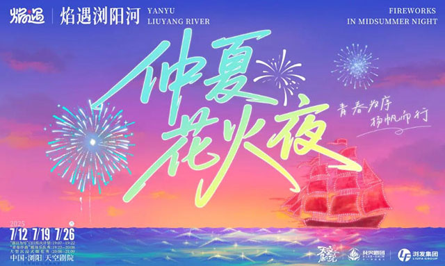2025年7月12日、19日、26日三个周六晚,“焰遇浏阳河・仲夏花火夜”将在浏阳市天空剧院上演!这场由“焰遇”IP联袂花火剧团打造的花火盛会,以“青春航海”为叙事主线,匠心打造“落日为号”白日焰火计划、“青春序曲”暖场乐队秀、大型沉浸式烟花秀,以星空为幕、焰火为浪,邀你共赴这场专属于青春的夏夜光焰狂欢。