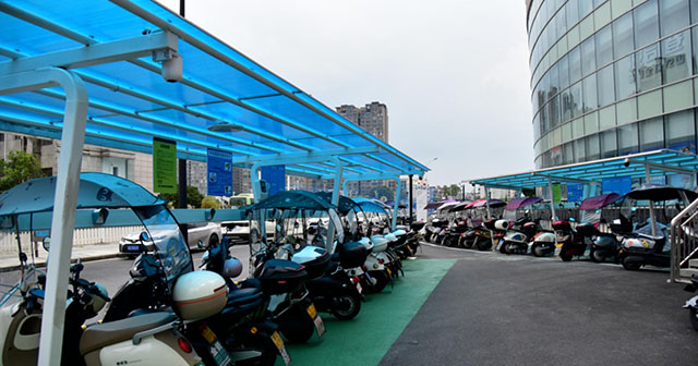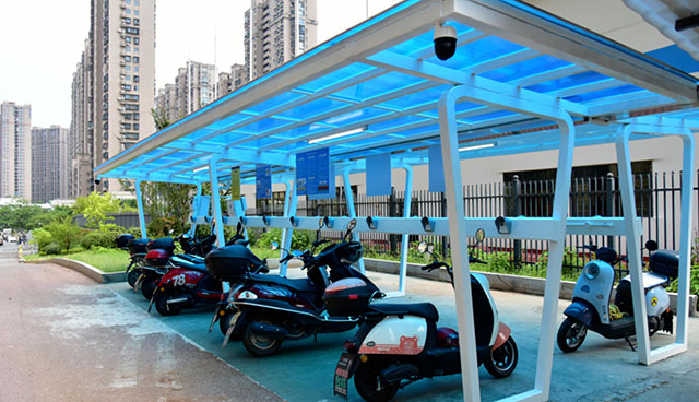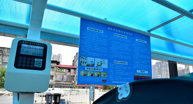 财富新世界小区有700余户居民,毗邻通程商业广场,日常约有300多辆摩托车,“充电难”问题长期困扰居民。浏发集团在项目中利用小区闲置空地新建4套充电棚,提供40多个充电端口。
