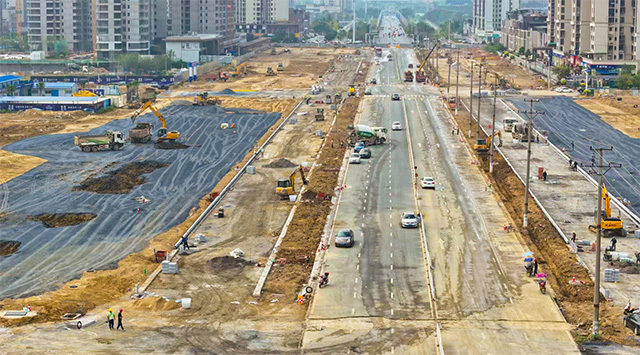 锦程大道提质工程总体进度已达80%。 彭红霞 摄