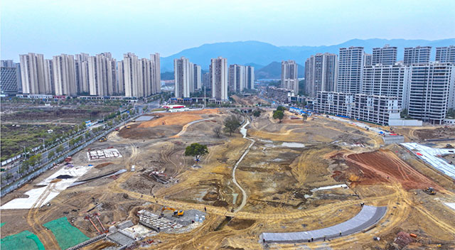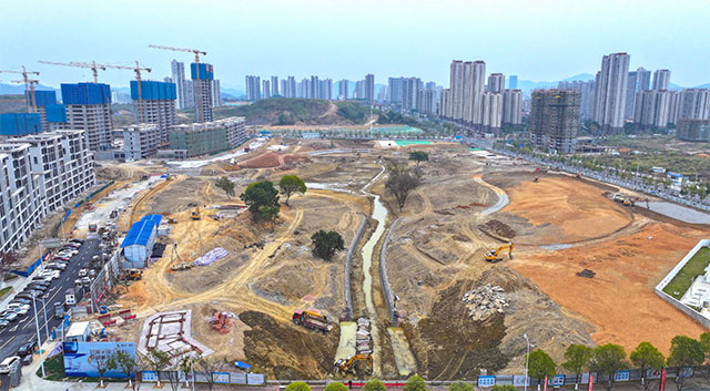 12月24日,浏阳市济川河排涝及调蓄设施建设(一期)项目施工现场一片繁忙,从高处俯瞰,以济川河为中心,沿河布局的广场、步道、草坪等功能分区已初现轮廓。