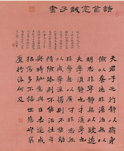 夫君子之行,静以修身,俭以养德。非淡泊无以明志,非宁静无以致远。夫学须静也,才须学也,非学无以广才,非志无以成学。淫慢则不能励精,险躁则不能治性。年与时驰,意与日去,遂成枯落,多不接世,悲守穷庐,将复何及!