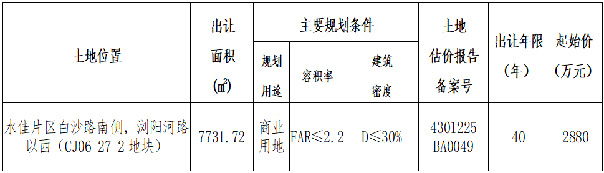 地块位置:浏阳市水佳片区白沙路南侧,浏阳河路以西