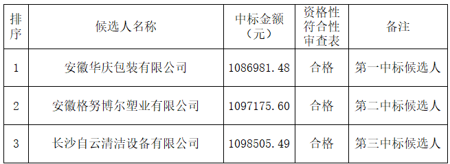 三、中标(成交)候选(前三名)评审结果